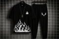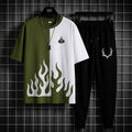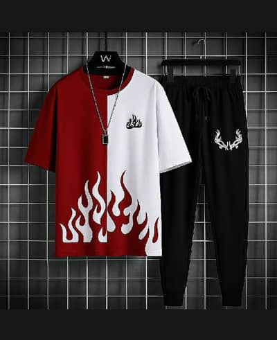 A two-piece men's tracksuit with a shirt and trousers. These tracksuits are typically made from soft, stretchable, and breathable fabrics like cotton jersey or mesh to allow for freedom of movement during exercise or for daily casual wear. They come in various styles, from basic solid colors to trendy prints. Breathable fabric. Available in differet colours.
